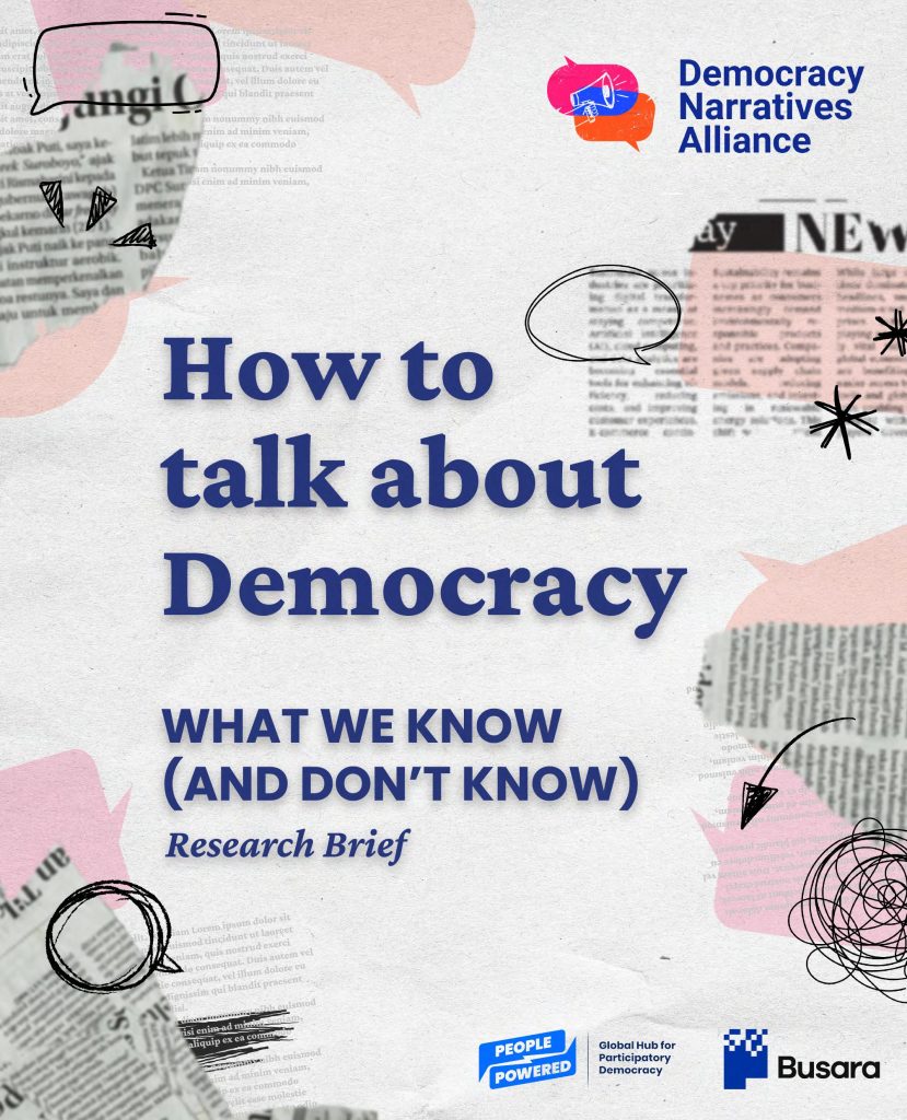 This research brief maps the dominant narratives shaping how people understand democracy today — and what to do about them. It identifies five categories of democracy narratives, each paired with practical counter-narrative strategies, and offers concrete guidance on how values, audience, framing, and message structure determine whether communications land. Whether you’re looking to counter disengagement, build participation, or sharpen your advocacy, this brief gives you an evidence-based foundation for more effective communication.