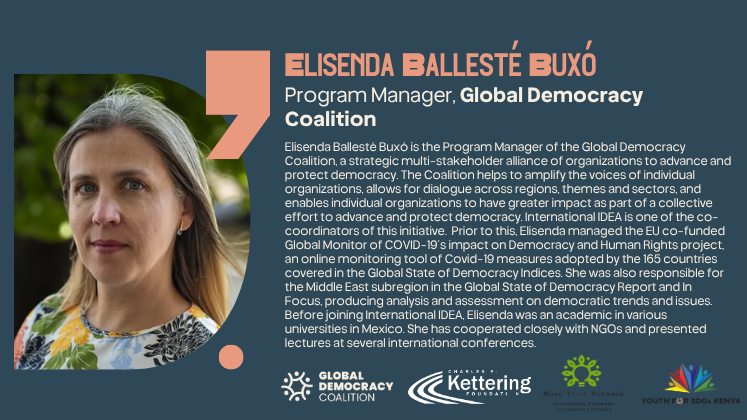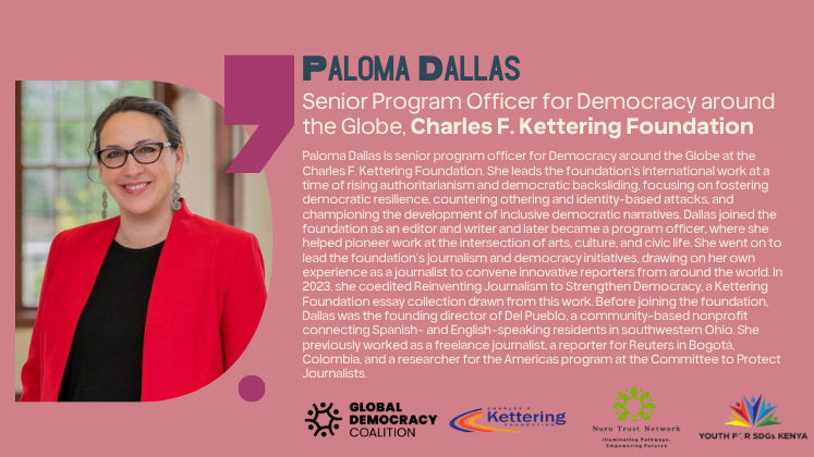- Link African democratic realities to global policy processes by situating issues such as kleptocracy, digital repression, and misinformation within the Global Democracy Coalition’s global framework.