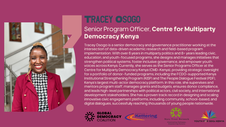 - Strengthen regional dialogue on Africa’s democratic challenges by examining shrinking civic space youth-led movements, and lessons from recent and upcoming elections.