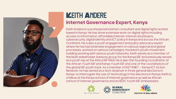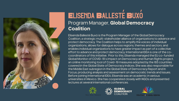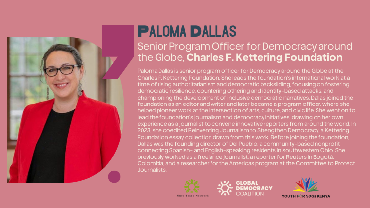 - Link African democratic realities to global policy processes by situating issues such as kleptocracy, digital repression, and misinformation within the Global Democracy Coalition’s global framework.