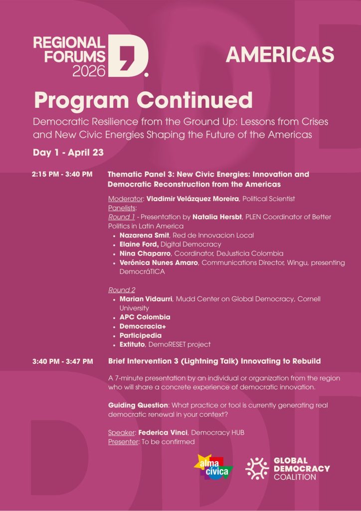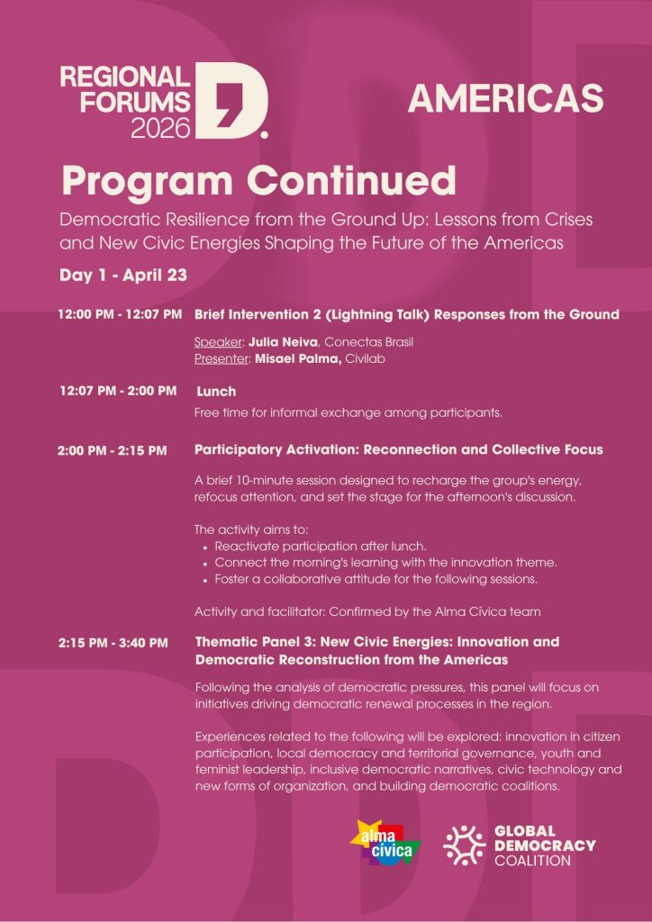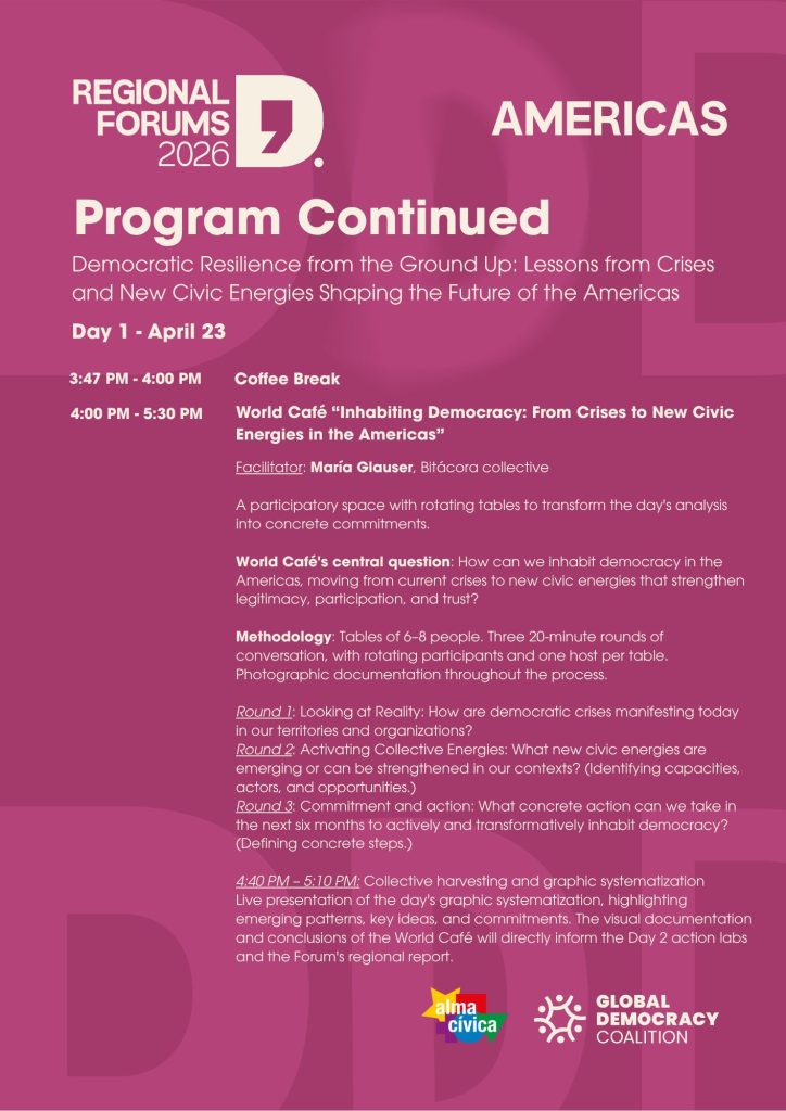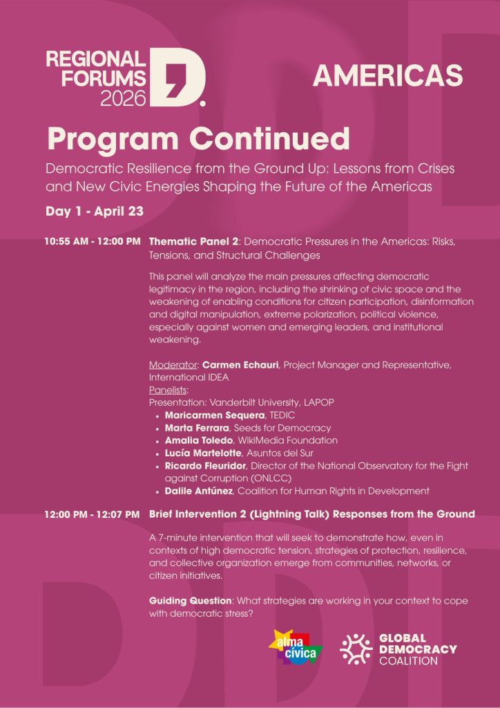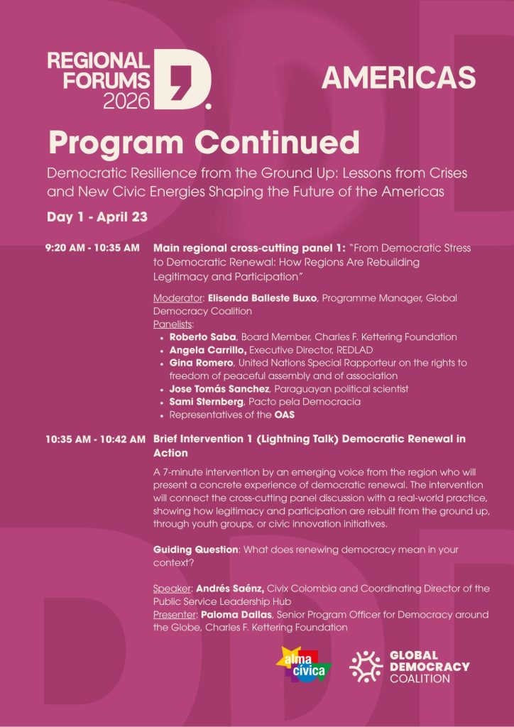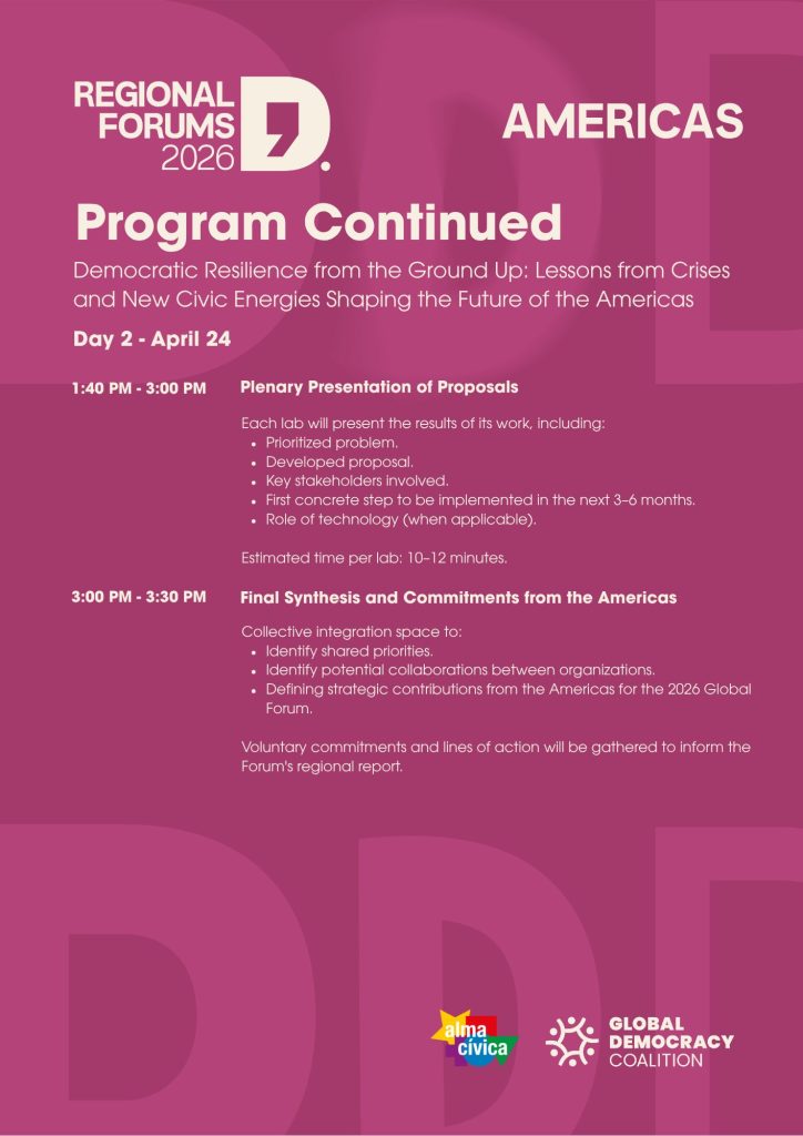 Theme: Democratic Resilience from the Ground Up: Lessons from Crises and New Civic Energies Shaping the Future of the Americas