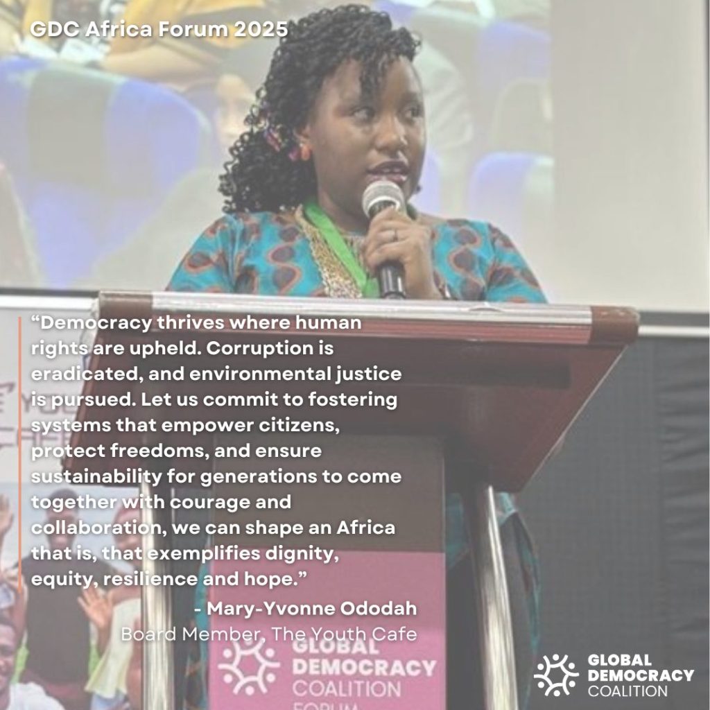 The Global Democracy Coalition (GDC) African Regional Forum 2025, organized by The Youth Cafe, is a flagship event focused on addressing the intersection of democracy, human rights, and environmental justice in Africa. This regional dialogue aimed to explore how democratic governance can effectively tackle environmental challenges while upholding human rights, emphasizing the pivotal role of youth leadership and grassroots activism.