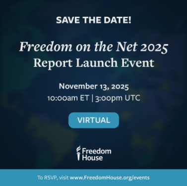 Join Freedom House for the launch of Freedom on the Net 2025: An Uncertain Future for the Global Internet. Following a presentation on key findings from the 2025 report, experts will discuss global trends, country-specific developments, and best practi