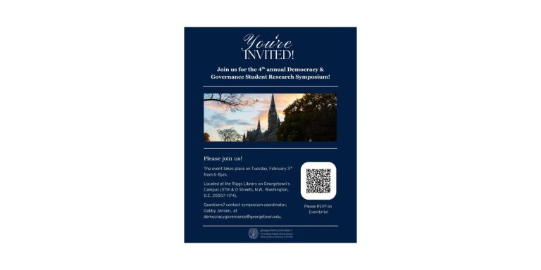 The 4th Annual Democracy & Governance Student Research Symposium will take place Tuesday, February 3, 2026, from 6:00–8:00 PM EST…